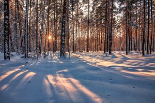 Закат в зимнем лесу