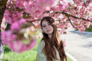 Девушка в цветущем саду