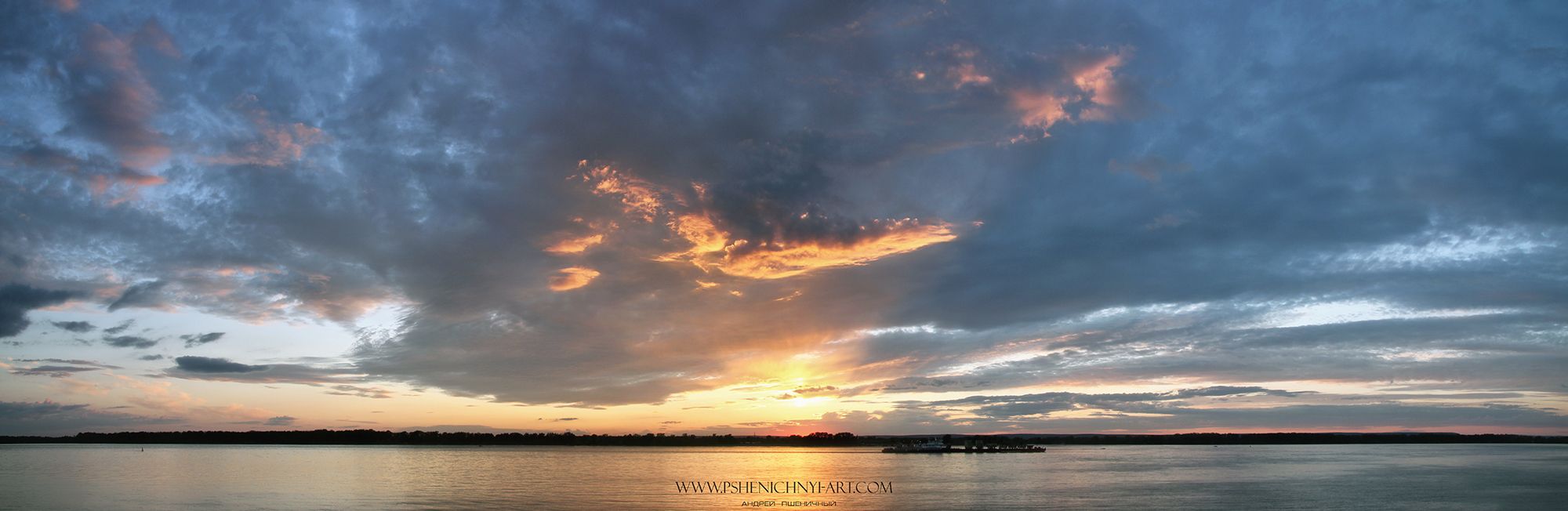 закат, небо, облака, пейзаж, река, горизонт, лето, волга, Пшеничный Андрей