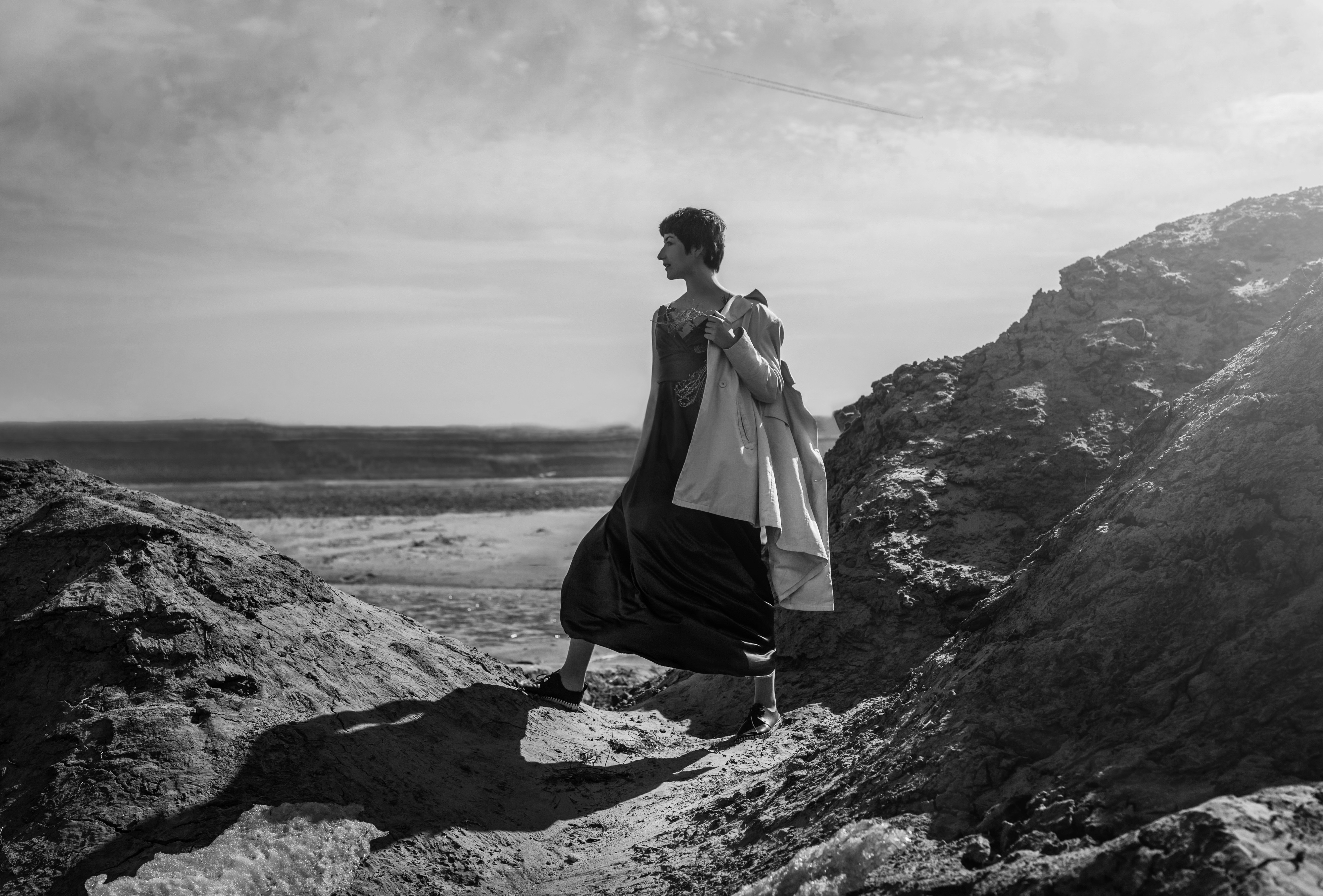 девушка,пейзаж,черно-белое фото, Мария Буданова