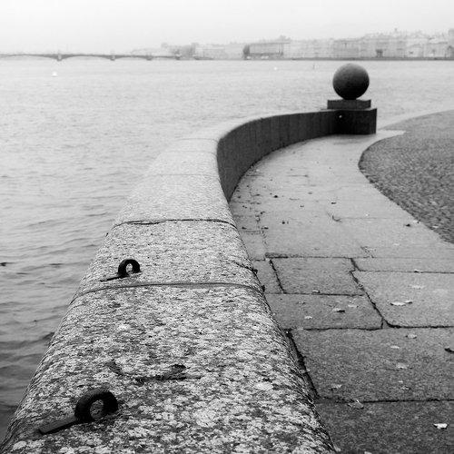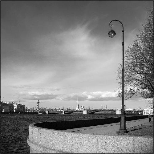 Черно-белая контрастная питерская зарисовка о гранитной молнии, пронзающей невский простор