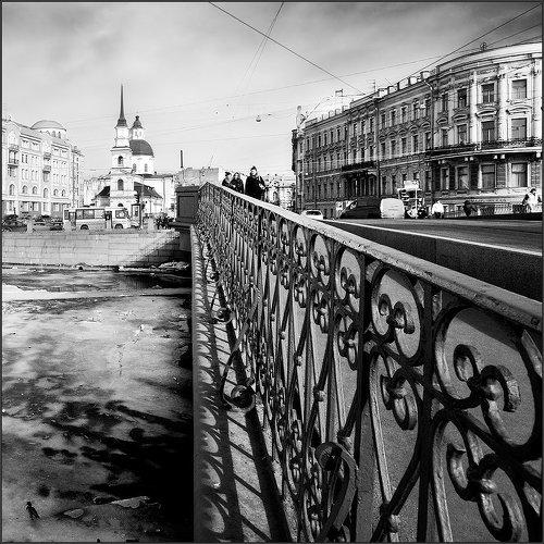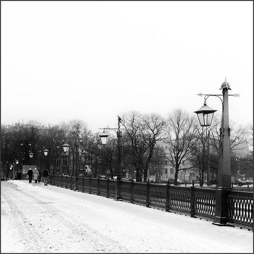 Черно-белый зимний питерский этюд с Иоанновского моста