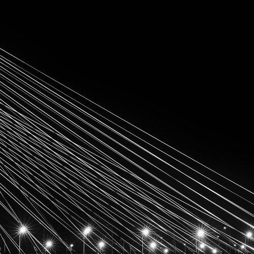 Простая черно-белая питерская квадратная зарисовка у моста Белинского через Фонтанку