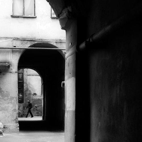 Черно-белый питерский квадратный дворовый этюд