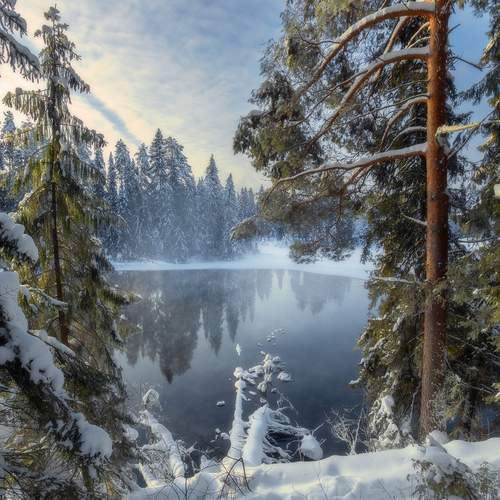 Озеро Теплое морозным утром января.
