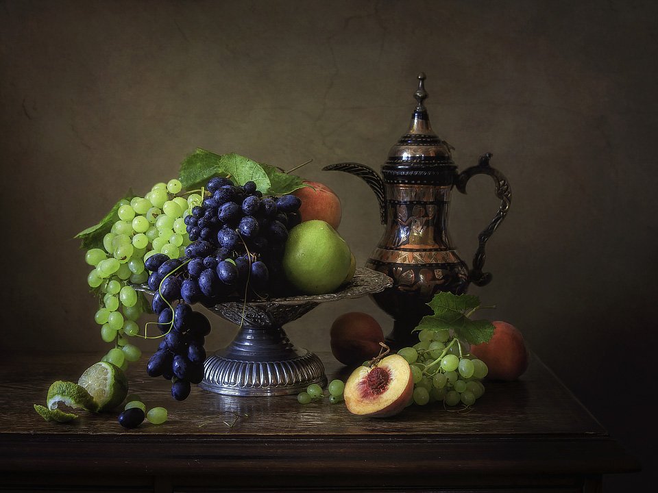 натюрморт, фрукты, ваза. восточный кувшин, лето, урожай, Ирина Приходько