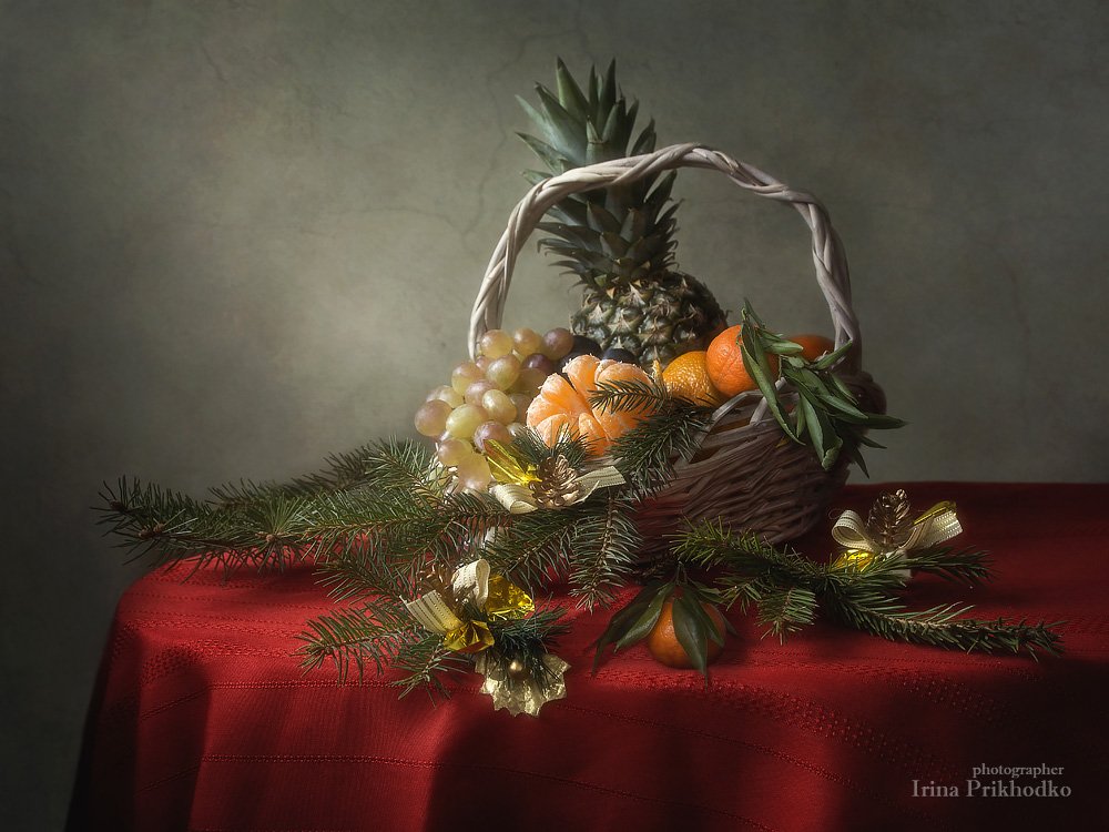 натюрморт, винтажный, художественное фото, корзина, фрукты, Новый год, Ирина Приходько