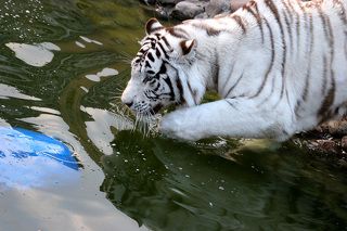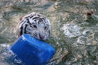 Купание белого кота