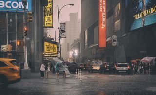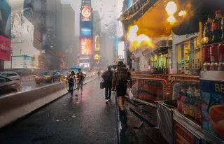Дождь на Таймс-сквер.