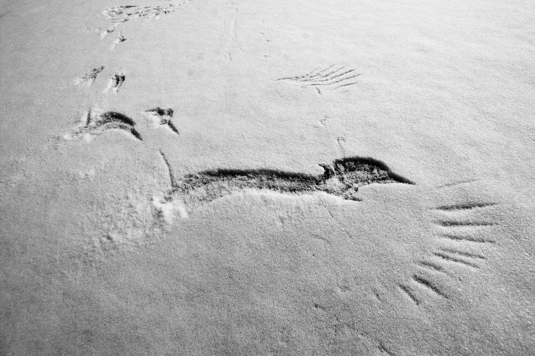 Лёд, снег, следы, птица, крылья, клюв, Дмитрий Ткаченко