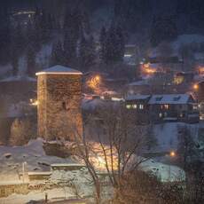 Mestia Towers After Snowfall
