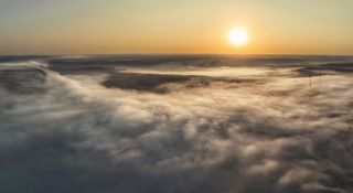 Озеро Донты под розовым одеялом тумана