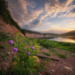Вечер на Сухоне с видом на Дымково