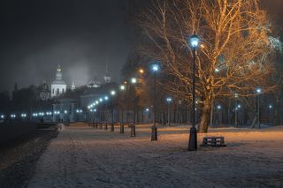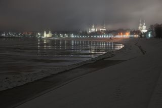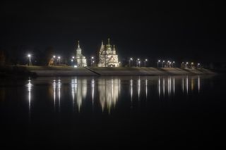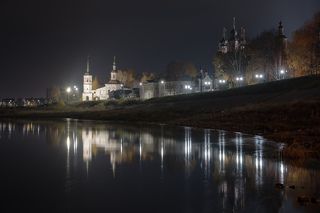 Набережная Великого Устюга пасмурным осенним вечером