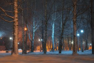 Дремлют тополя под снегом