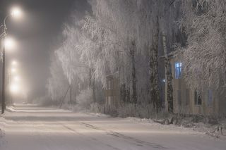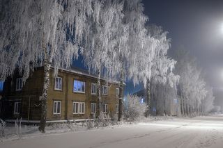 Окутанные инеем и морозом дремлют дома и деревья