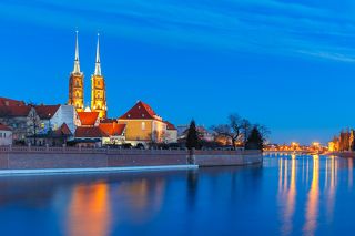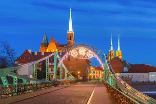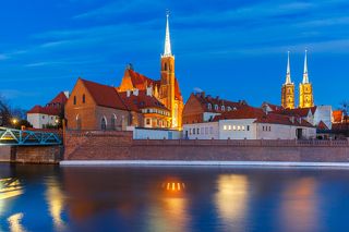 Ostrow Tumski at night in Wroclaw, Poland