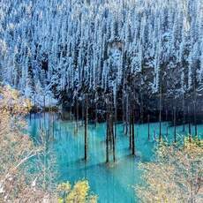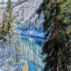 Озеро Каинды осенним утром Казахстан
