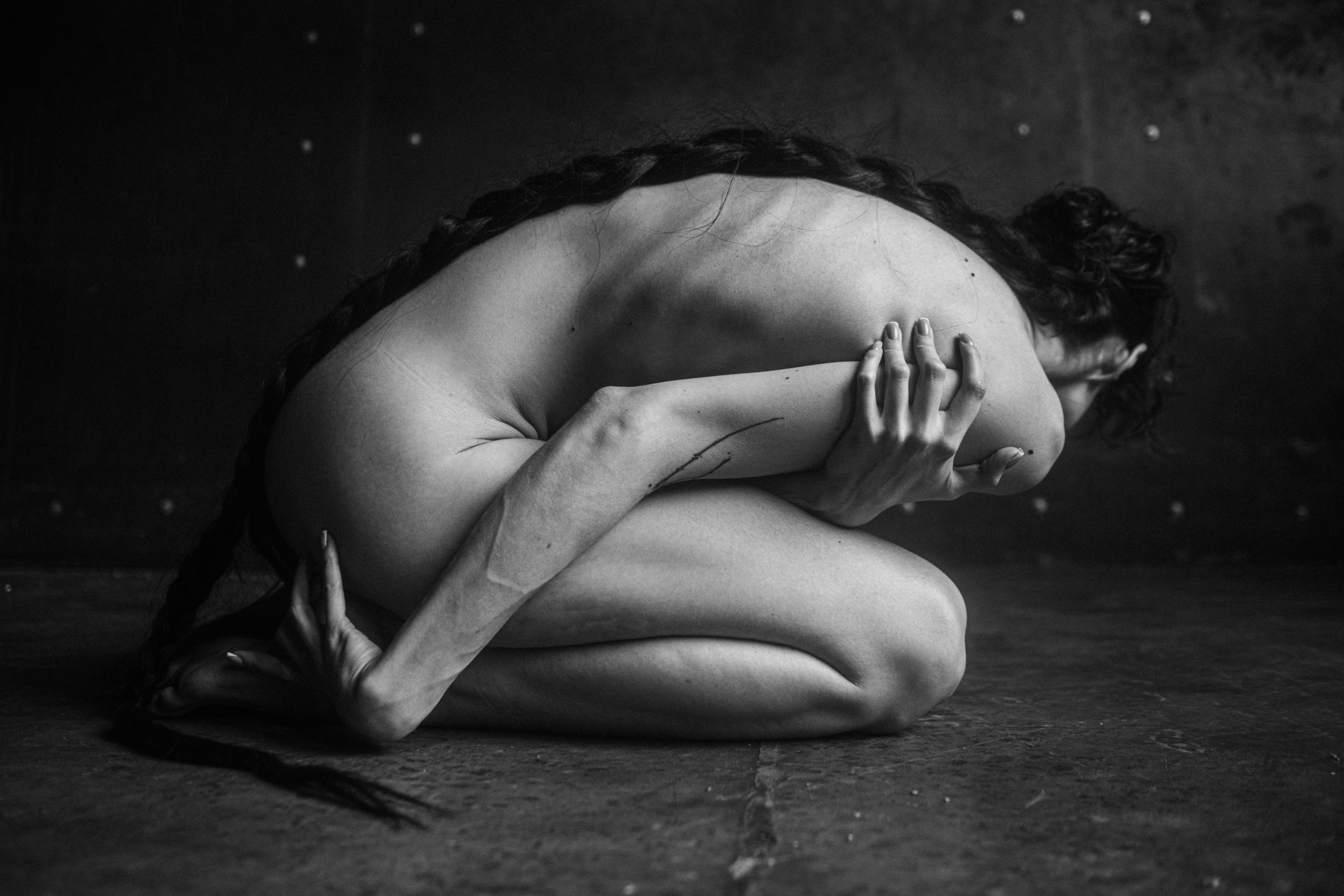 Марина, Вы снова ведёте взгляд вглубь — тело сжато, но не сломлено. Свет ложится, как память на коже, и каждая линия — это тихий рассказ. Знакомый почерк: тень не уничтожает, а дополняет. 💫