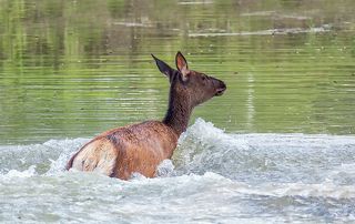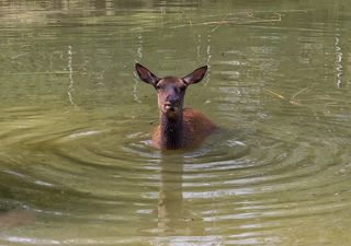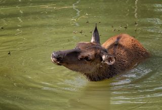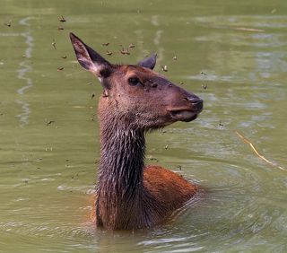 Марал пытается избавиться от слепней..