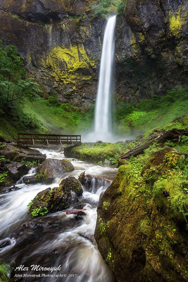 сша, орегон, водопад, пейзаж, лес, скала, горы, ущелье, мох, мост, река, ручей, вода,, Alex Mironyuk
