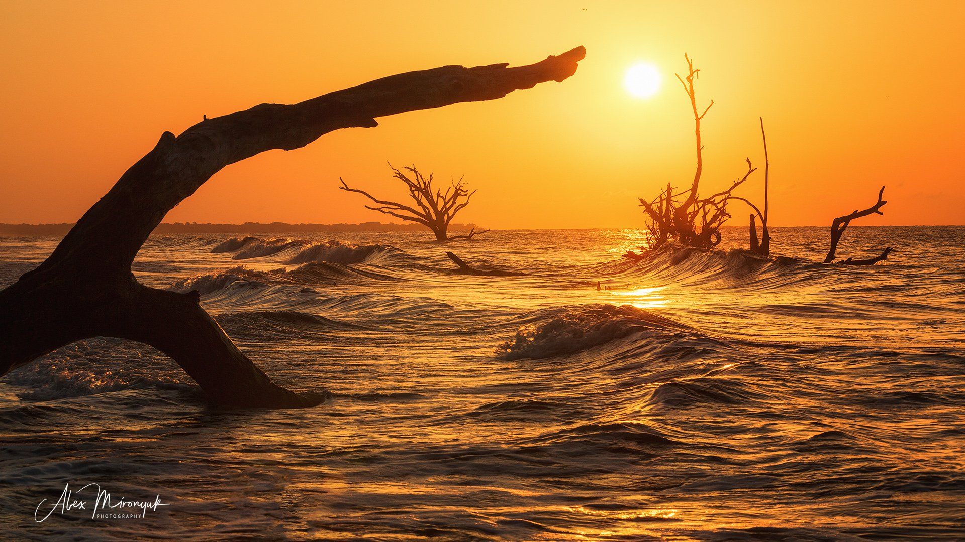 пляж, дерево, рассвет, солнце, океан, море, сухое дерево,, Alex Mironyuk