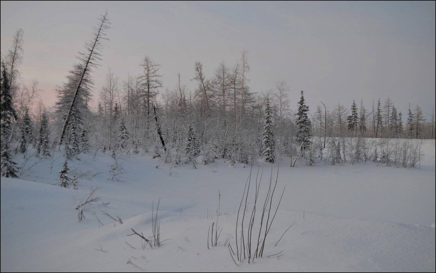 Таймыр. Январь. Распогодилось сегодня и можно наблюдать отблески солнца. До конца Полярной ночи осталась одна неделя. 13ч местного времени. t-32C