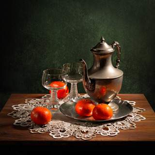 кофейник, молочник, ваза, цветы, салфетка., Рут