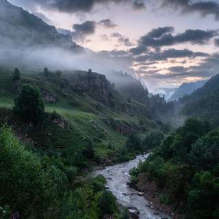 Майский вечерний туман над озером