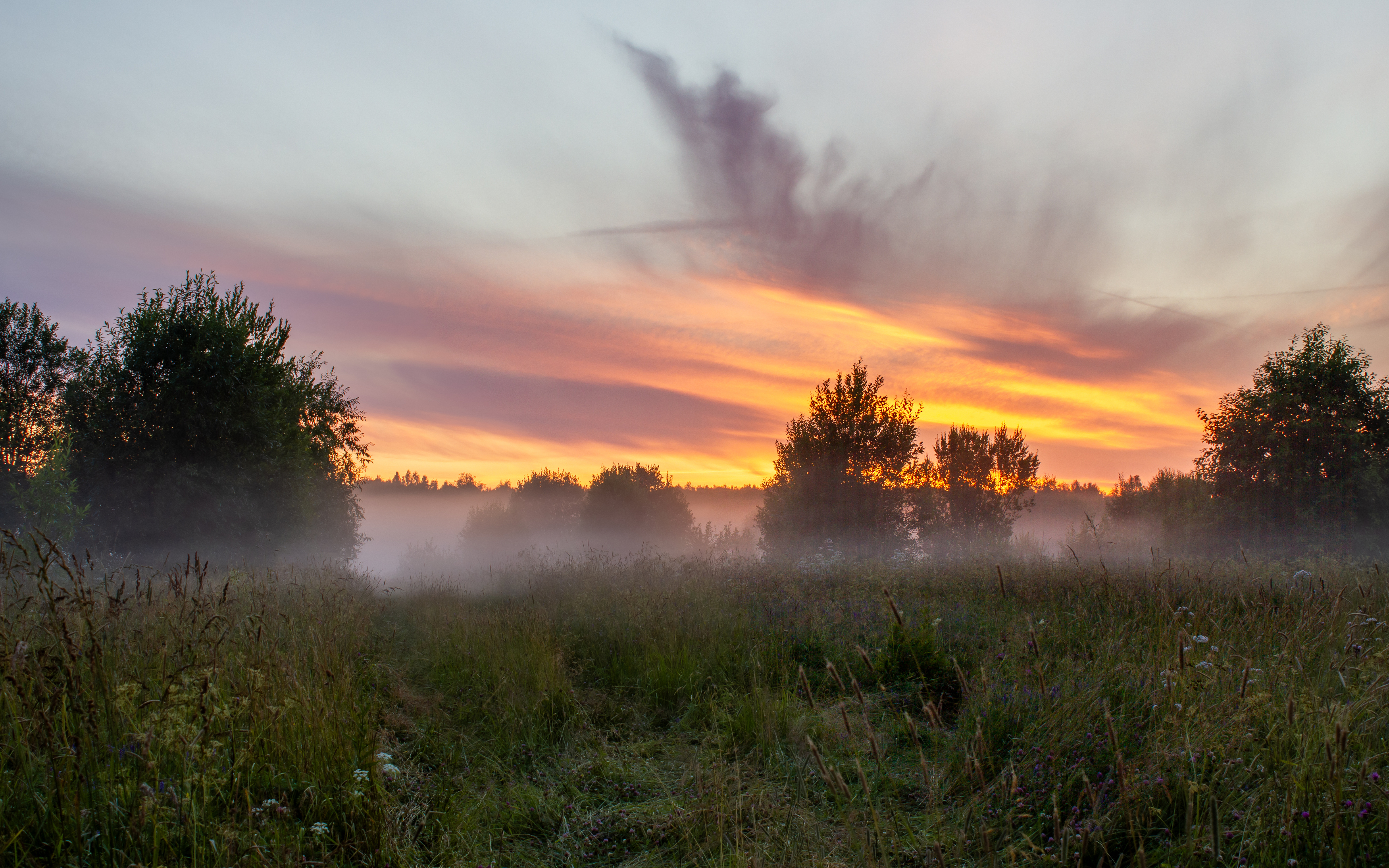 Туман на поле за деревней