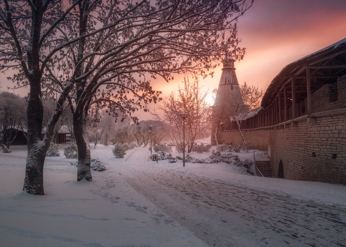 утро, рассвет, Псков, зима, снег,, Cтанислав Малых