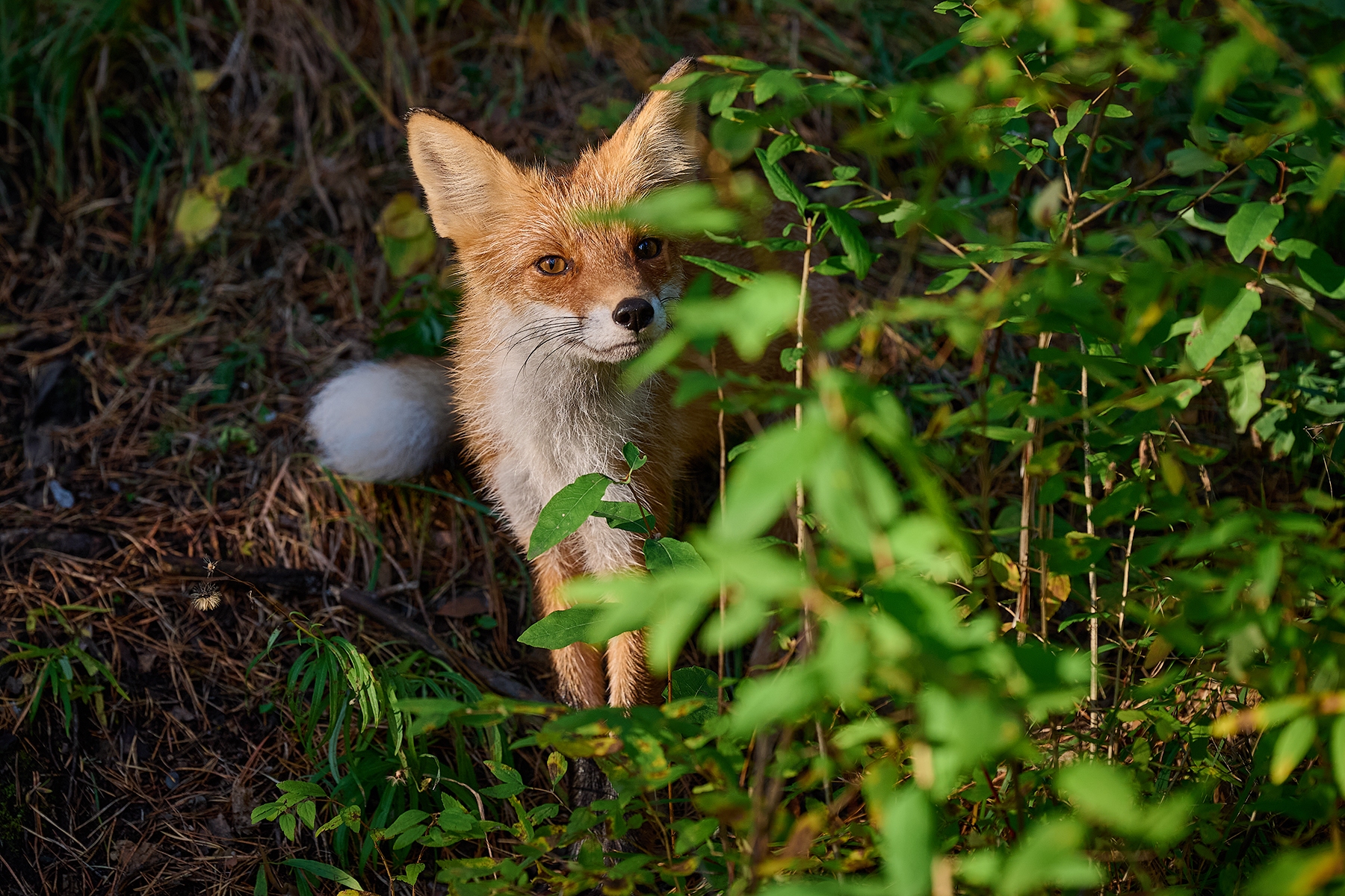 Воскресным утром я встал пораньше, чтобы встретить рассвет на Воробушках. Пришел до восхода солнца. Встретил рассвет, поснимал пейзажи и пошел вниз к парковке. Внезапно на тропе встретил лису. Сначала показалось, что это чья-то собака идёт вверх по тропе, но потом понял, что это лиса. Раньше я никогда не встречал лис на воробушках. Думал, что она увидев меня убежит, но она видимо меня давно видела и не особо-то боялась. Я растерялся. Резко достал камеру из рюкзака и принялся её фотографировать. Сделав пару кадров вспомнил, что в камере стоят настройки для пейзажа. Начал крутить колёса на камере. У меня очень мало опыта съемки животных. К тому же у меня камера новая и я еще не привык к ней. Путался в настройках, крутил колёса не в ту сторону. К счастью лиса никуда не торопилась и позировала мне. В какой-то момент она вообще притворилась спящей. Вероятно она ожидала, что я угощу её вкусняшкой. Угостить мне её было нечем. Поняв это она повернулась и пошла вверх по тропе, а я довольный пошёл вниз.