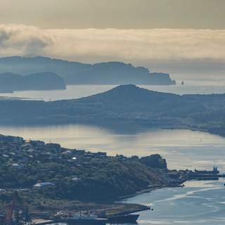 По пути в бухту Русская. В облаках скрывается вулкан Вилючинский.