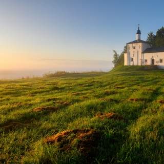 Туманное утро у стен Свято-Успенского Псково-Печерского монастыря