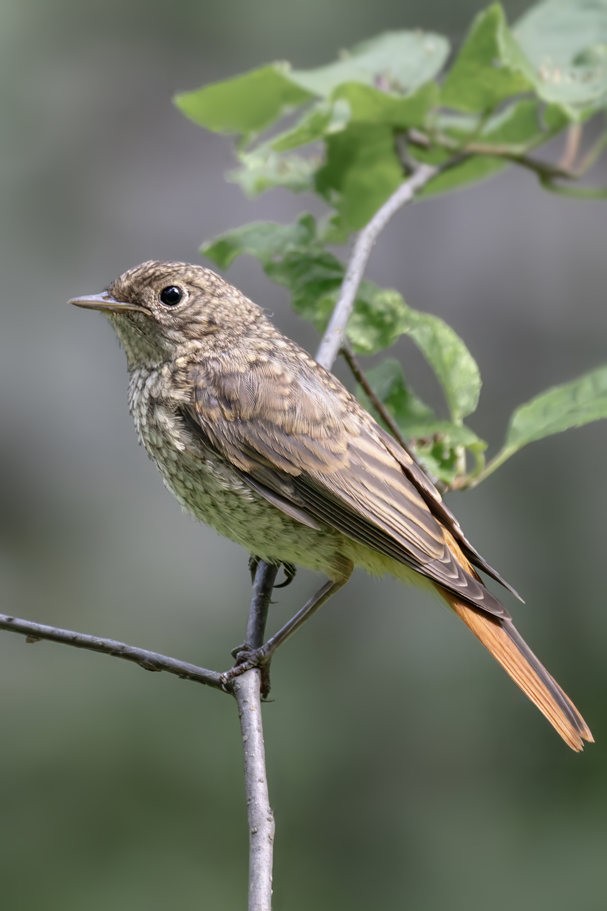 Милая птичка с ярким хвостом. Судя по окраске, ещё молодая.