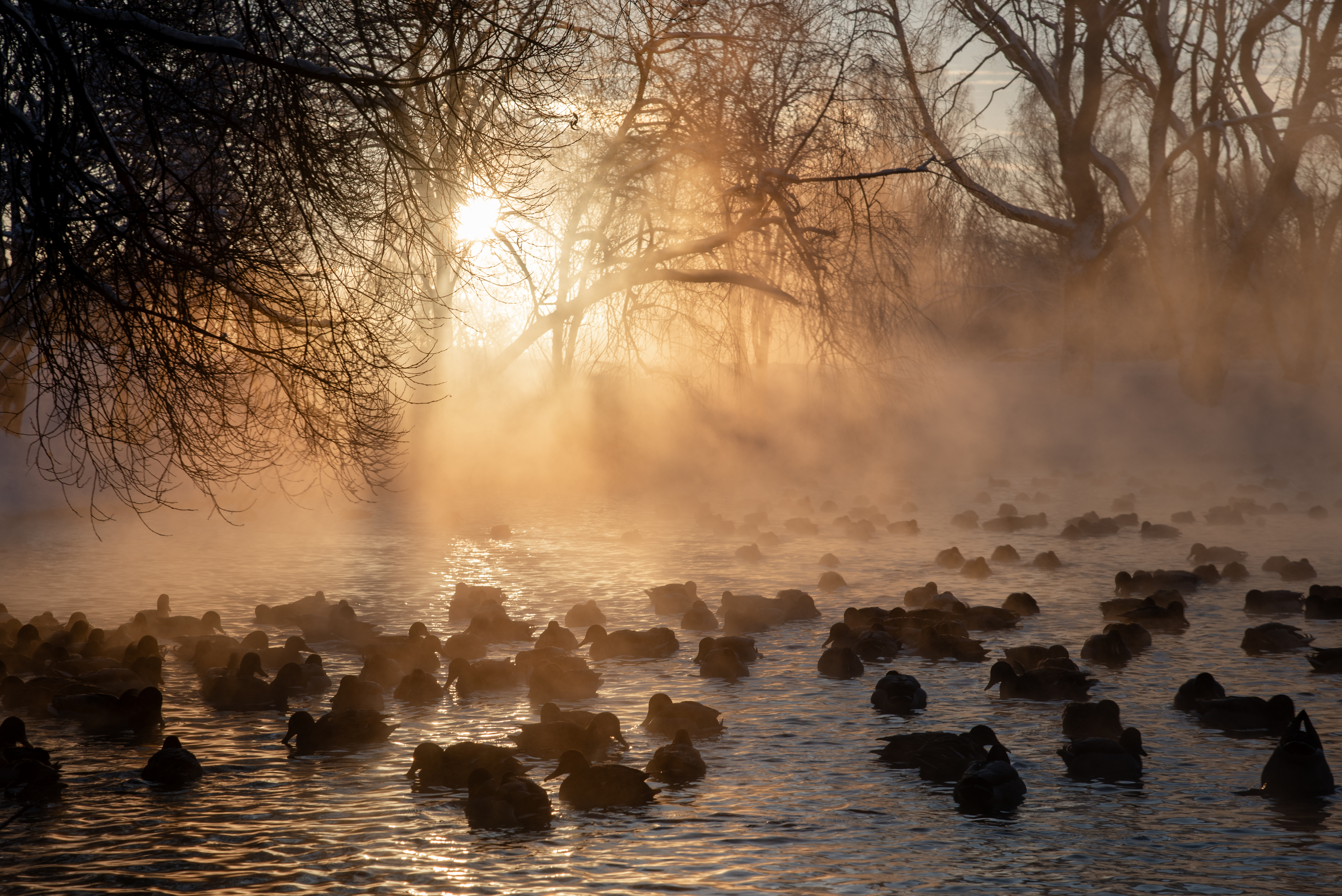 Утки на незамерзающем пруду