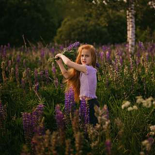 Свет мягкий, падает сбоку, подчёркивая текстуру волос и кожу. Композиция с акцентом на лице, фон размыт, что удерживает внимание на модели. Цветовая гамма спокойная, с преобладанием холодных тонов. Вы передали атмосферу тихого момента на природе.
