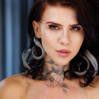 Clean lines, soft light — the contrast between the white wall and black panel gives the image structure. She’s posed with quiet confidence, the lace and tattoos adding just enough detail without stealing focus. Solid work.