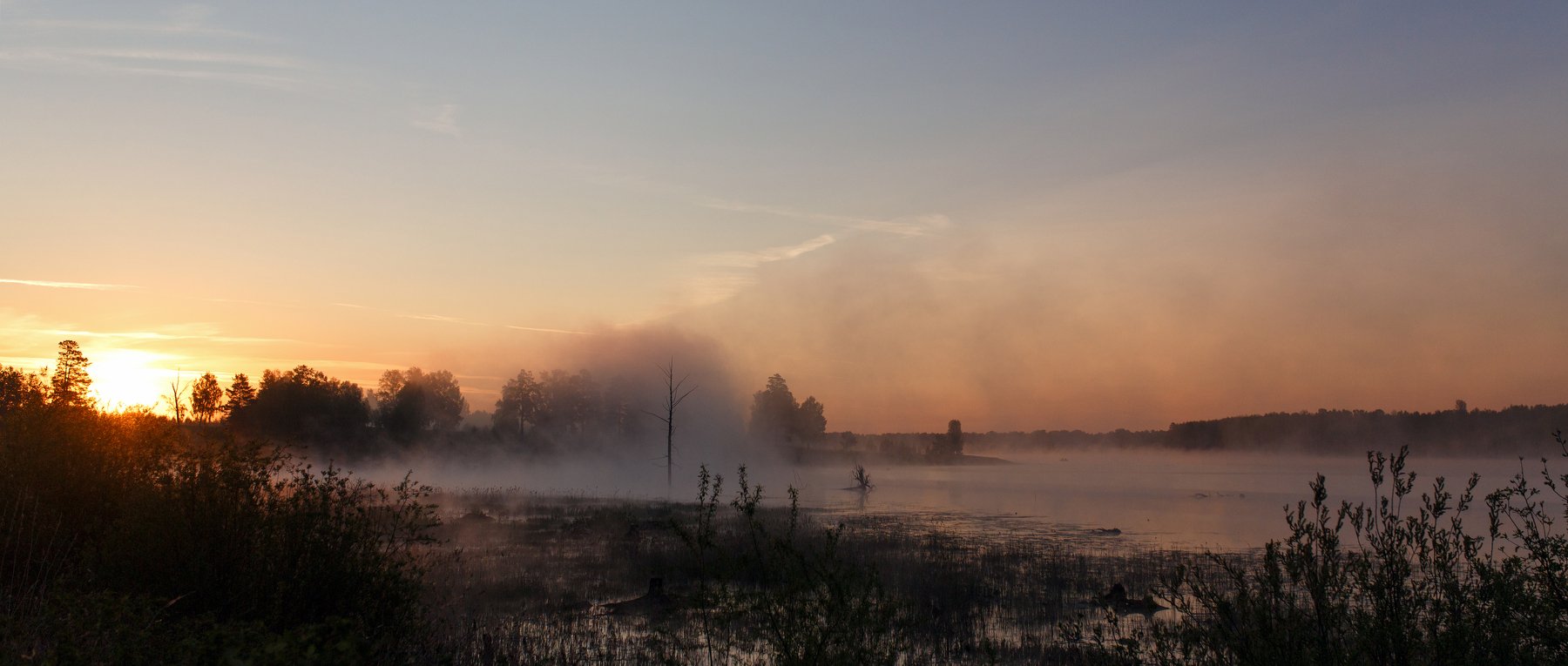 Вода, Лето, Рассвет, Солнце, Туман, Цвелёв Дмитрий