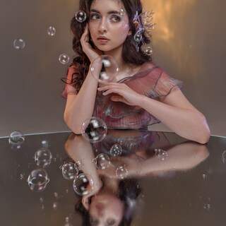 Валентина, образ получился тонкий и атмосферный — как будто вода осталась на коже, а свет проникает сквозь прозрачные слои. 💧✨
