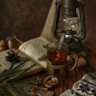 Тёплые оттенки, бумага, ягоды, игрушки — всё это как будто шепчет про прощание с годом.