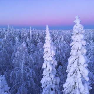 северное сияние, полярное сияние, зима, мороз, ночь, звезды, снег, ели, Иван Чаланов