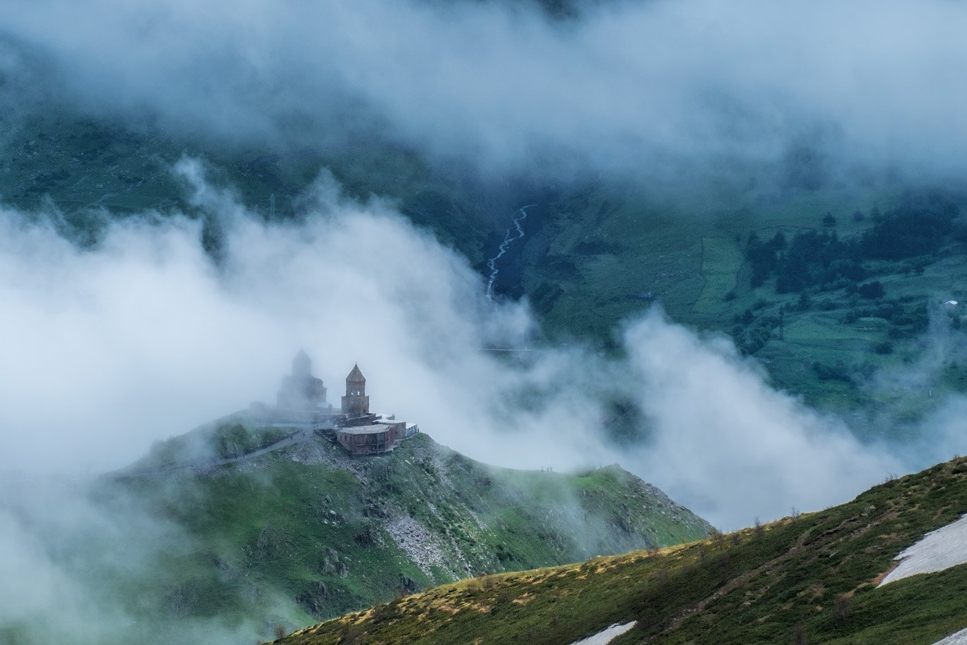 Горы, Облака, Пейзаж, Церковь, Dmitriy  Baginskiy