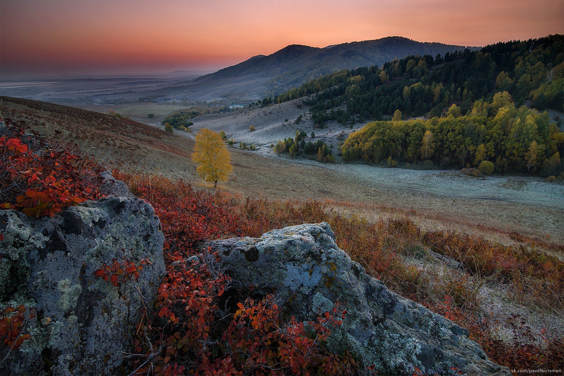 Алтай, Белокуриха, утро, заря, восход, осень, скалы, горы, иней, небо, красный, Павел Силиненко