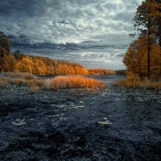 Октябрьский вечер на лесном озере. Беларусь. Инфракрасная съемка. Фильтр 650 нм.