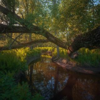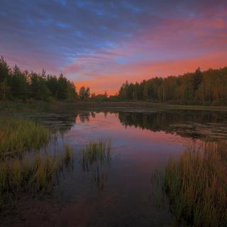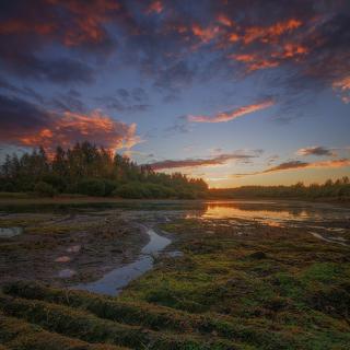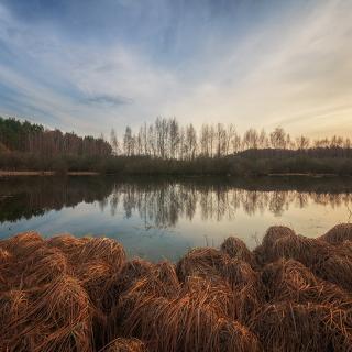 россия, подмосковье, весна, пруд, кочки, трава, вода, небо, облака, Иван Мухин