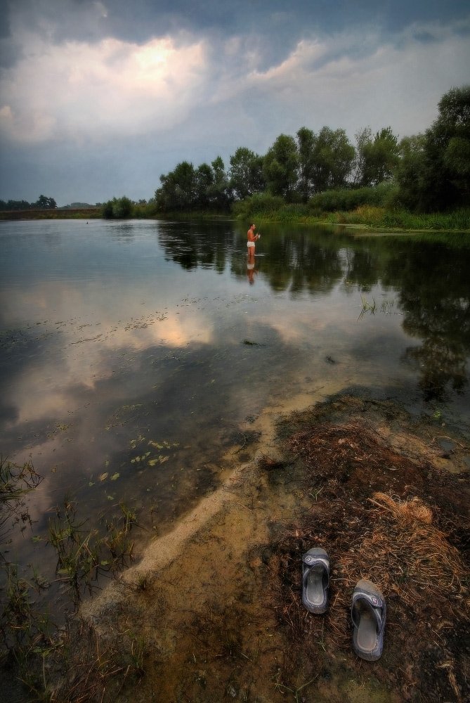 лето, вечер, река, рыбак, Петриченко Валерий