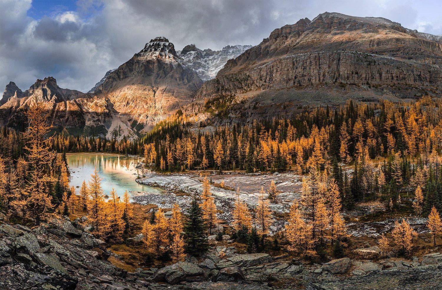 Последний день сезона на озере О'Хара подарил нам и яркий свет солнца в окнах низкого осеннего неба и пронизывающий холодный ветер и снег в лицо и красивые цвета на закате.