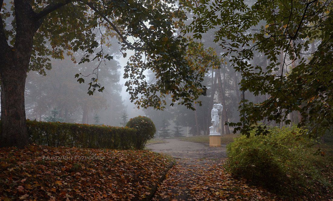 осень, парк, листья, туман, Николай Стюбко