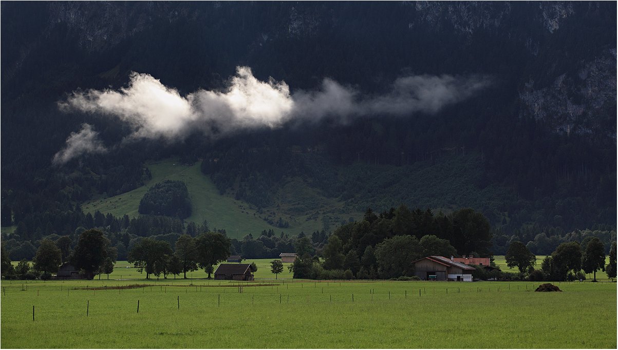 Я бы знаете, Вика, что сделал... Я бы центральной части облачков капельку фактурки придал, чтобы они такими пересвеченными не смотрелись, а нижнюю часть фото слегка бы кривыми высветлил и желтеньким бы сдобрил, словно поле солнышком тоже освещено.